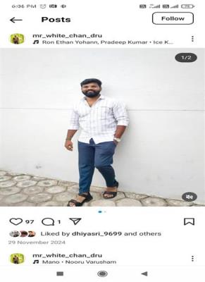 His name is chandru. He has one younger sister and she is married. His parents were working. He is very kind and jolly person. His parents were friendly type. His native is theni, aundipatti. He has own house in aundipatti and tirupur.